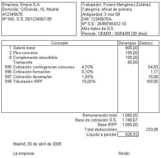 Ejemplo sencillo de una nómina